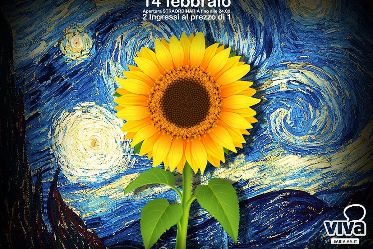 Il 14 febbraio il teatro Margherita osserverà un''apertura straordinaria di Van Gogh Alive - The Experience fino a mezzanotte. Dalle 14 alle 24, inoltre, chi accede in coppia (qualunque coppia) pagherà due biglietti al prezzo di uno solo se acquistati al botteghino.