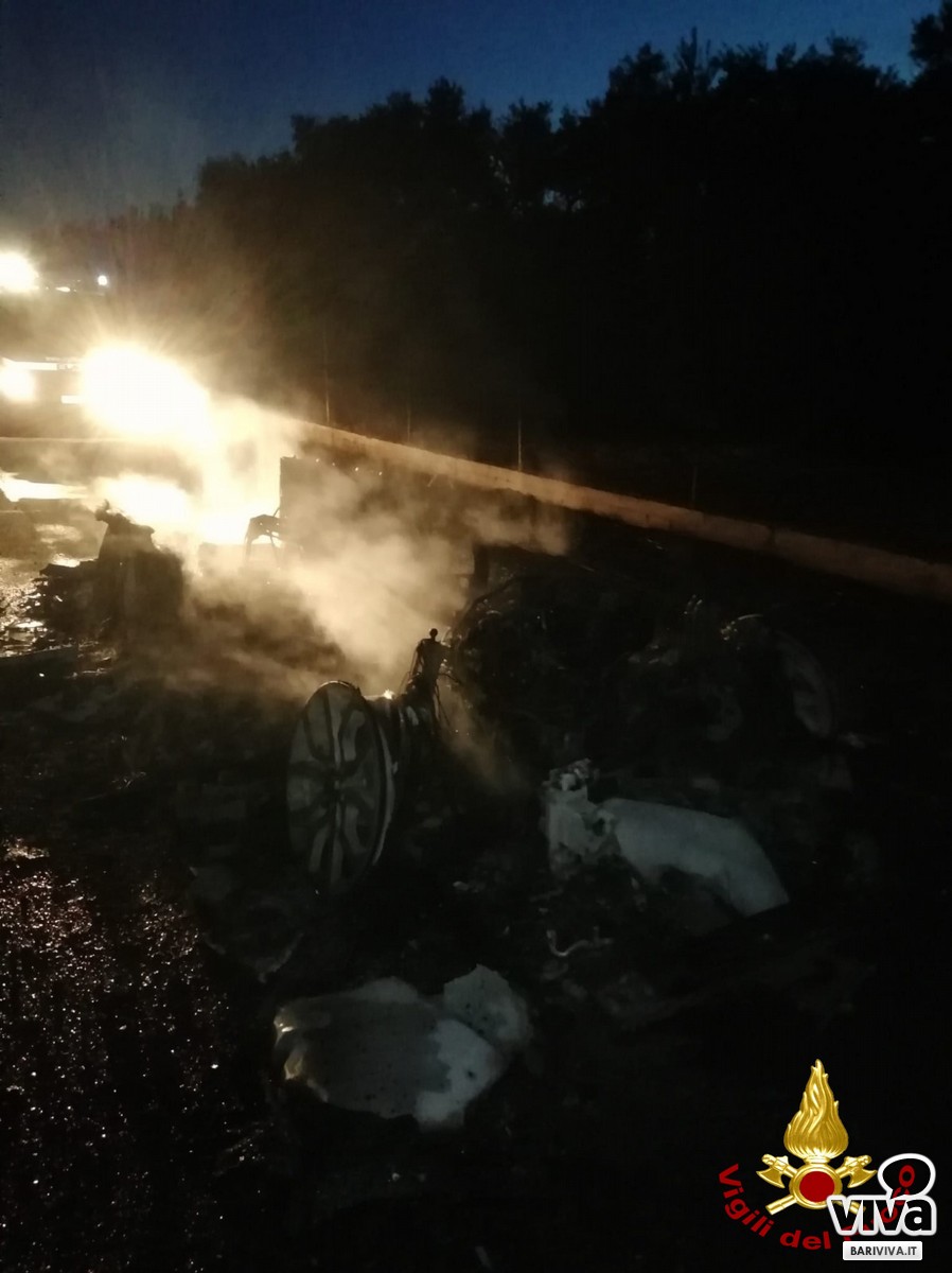 Auto in fiamme nell'agro di Grumo Appula: l'intervento dei Vigili del Fuoco di Cassano