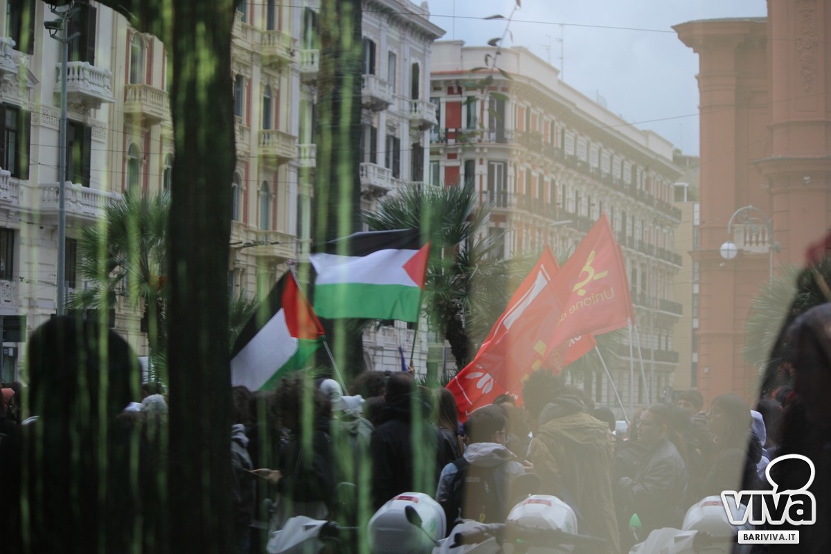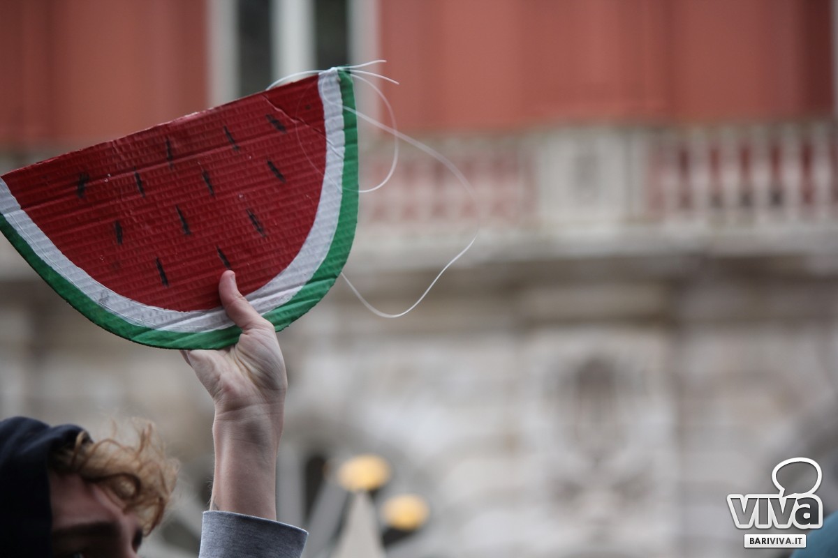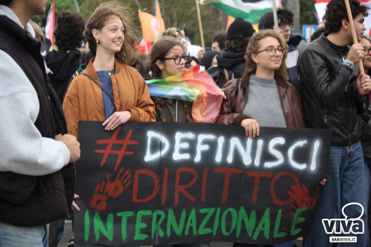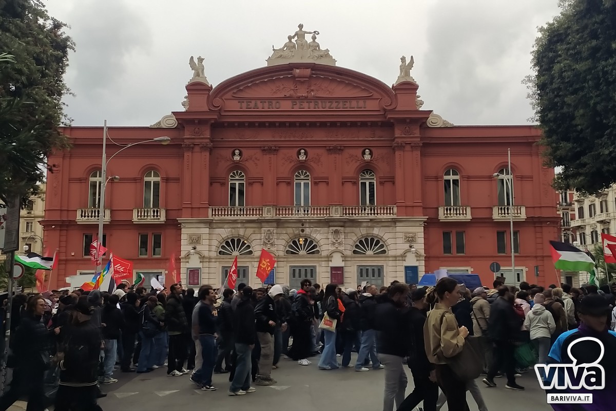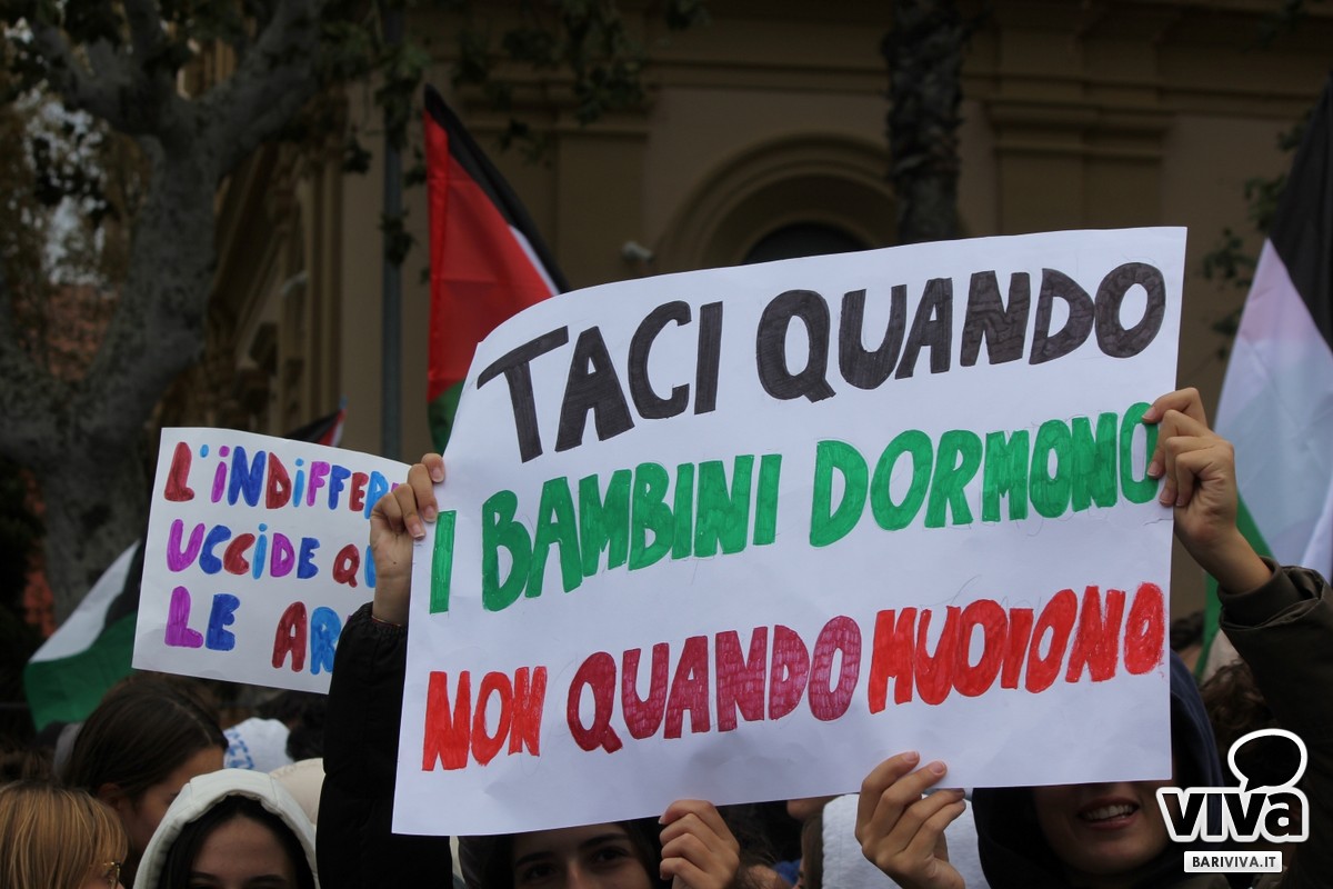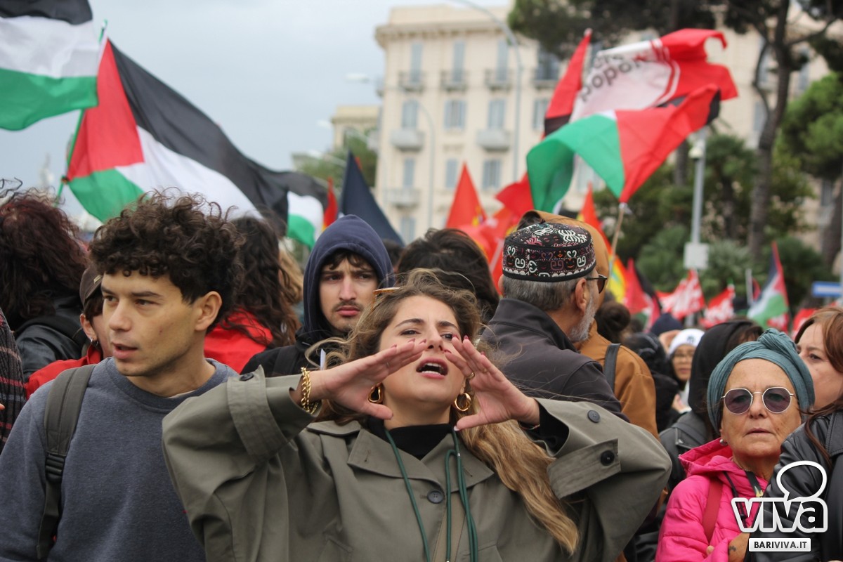 Il corteo è adesso arrivato in Corso Cavour. Il termine del serpentone è ancora a Molo San Nicola. Il corteo si sta sviluppando con ordine e entusiasmo: persone di ogni età a manifestare contro il genocidio, slogan anche contro il governo italiano. "Bari lo sa da che parte stare, Palestina Libera dal fiume fino al mare" il coro più gettonato, soprattutto fra gli studenti, anche giovanissimi. Presenti anche famiglie e semplici cittadini. Il corteo è sfilato davanti al Teatro Petruzzelli, sonori fischi e cori all'altezza di Via Melo, nei pressi del consolato israeliano.