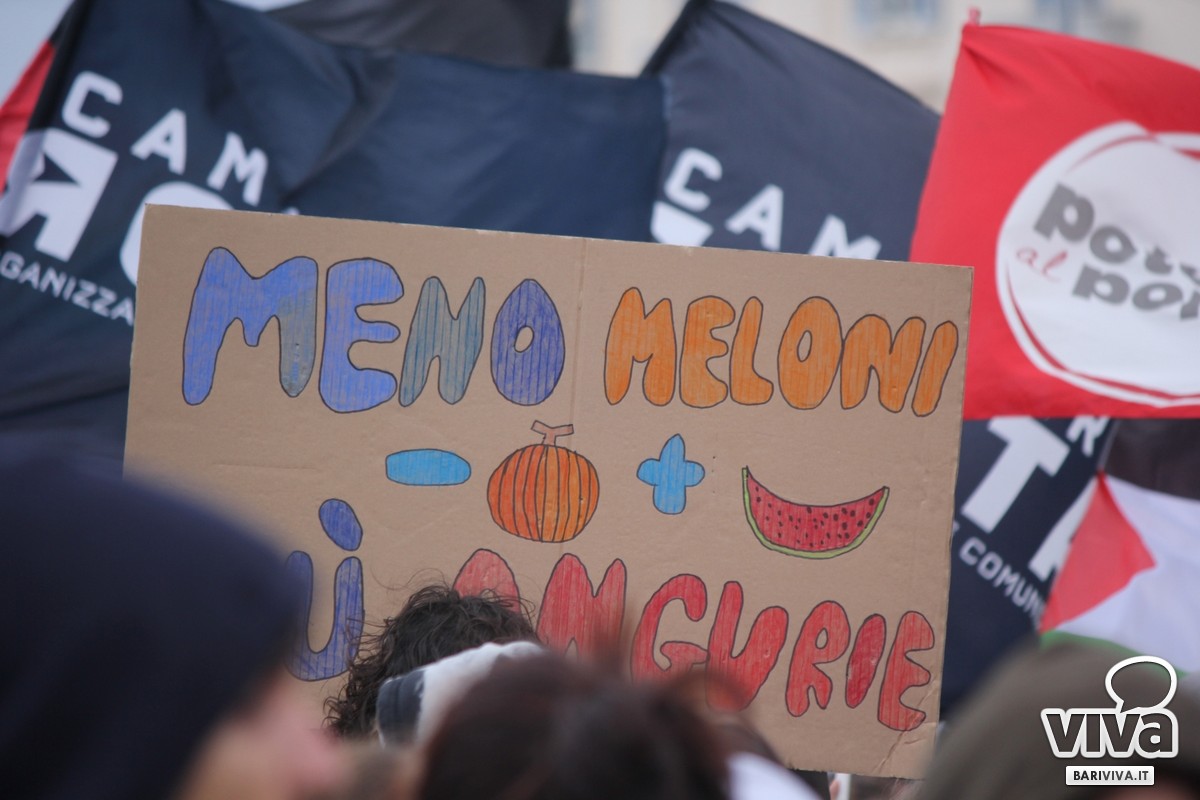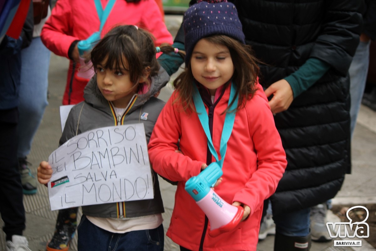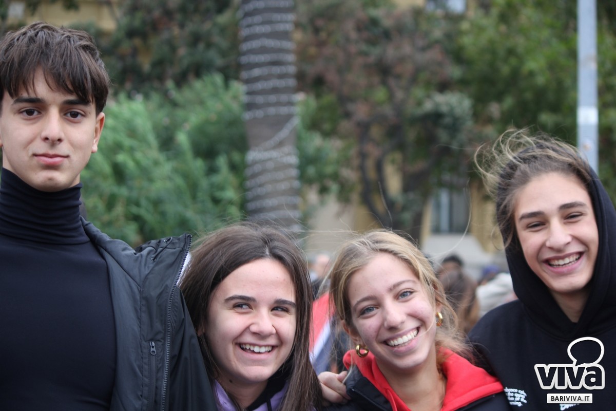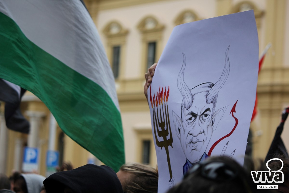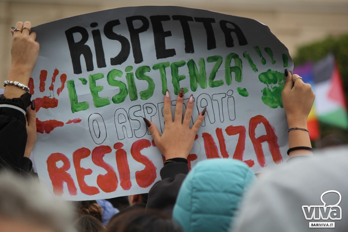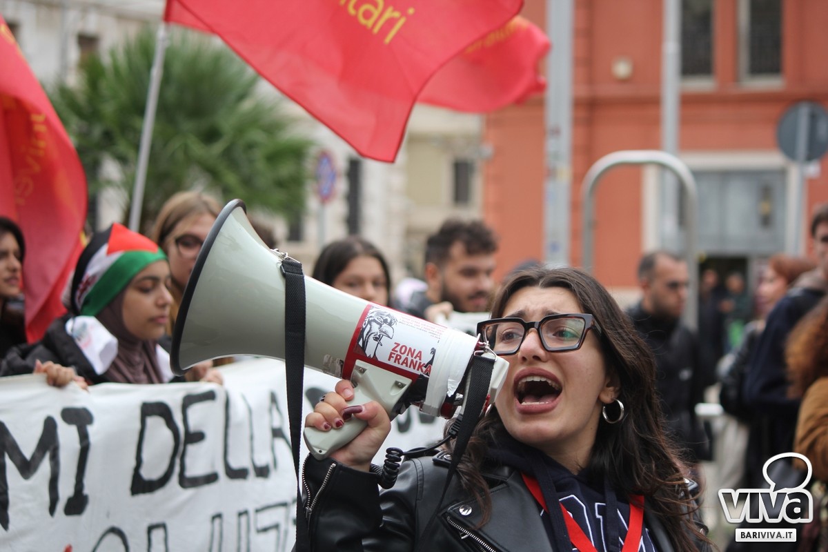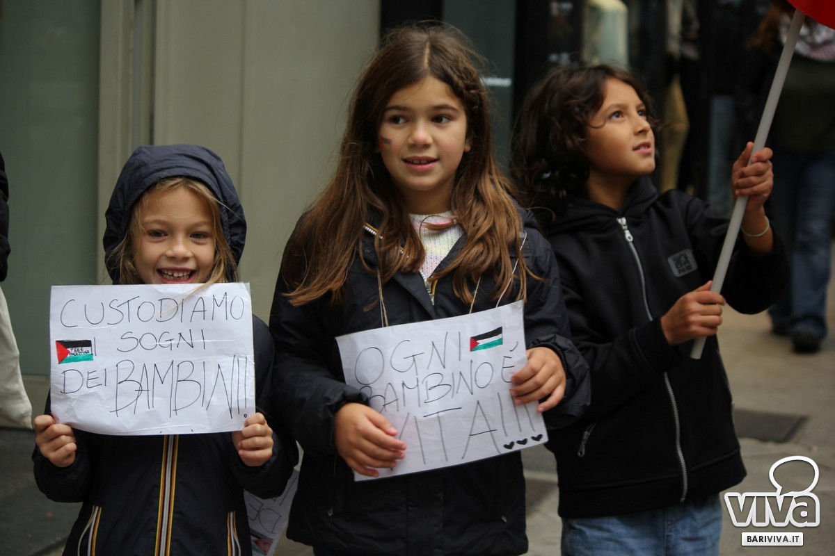 Il corteo è adesso arrivato in Corso Cavour. Il termine del serpentone è ancora a Molo San Nicola. Il corteo si sta sviluppando con ordine e entusiasmo: persone di ogni età a manifestare contro il genocidio, slogan anche contro il governo italiano. "Bari lo sa da che parte stare, Palestina Libera dal fiume fino al mare" il coro più gettonato, soprattutto fra gli studenti, anche giovanissimi. Presenti anche famiglie e semplici cittadini. Il corteo è sfilato davanti al Teatro Petruzzelli, sonori fischi e cori all'altezza di Via Melo, nei pressi del consolato israeliano.