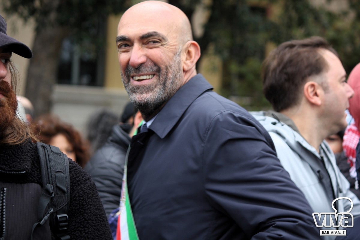 Anche il sindaco di Bari Vito Leccese, in veste istituzionale (con fascia tricolore al petto) ha raggiunto il corteo alla partenza da Molo San Nicola.