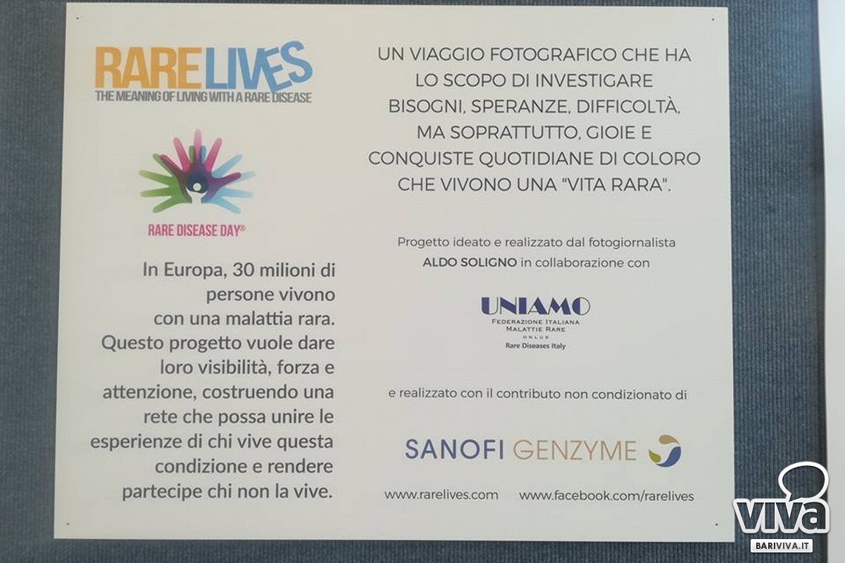 È stata inaugurata questa mattina preso il colonnato della Città metropolitana di Bari la mostra fotografica "Rare Lives. Il significato di vivere con una malattia rara" del fotoreporter Aldo Soligno, organizzata da Uniamo Federazione Italiana Malattie Rare con il supporto di Sanofi Genzyme, divisione specialty care di Sanofi. A tagliare il nastro il sindaco metropolitano Antonio Decaro e la consigliera Francesca Pietroforte. La mostra resterà aperta nel Colonnato della Città metropolitana di Bari fino al 3 marzo.