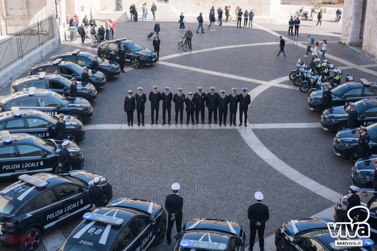 È stata una giornata di importanti novità per la Polizia Locale di Bari, che ieri ha ricevuto 35 nuovi veicoli destinati a rafforzare i servizi di viabilità e pronto intervento. La cerimonia di consegna si è svolta davanti alla Basilica di San Nicola, alla presenza delle autorità militari, religiose e civili, l'assessora alla Vivibilità urbana e Protezione civile, Carla Palone, il comandante Michele Palumbo e dei numerosi cittadini. I nuovi mezzi, tutti modello Citroën C4 Hybrid, sono stati benedetti da Padre Giovanni Distante, Priore della Basilica.