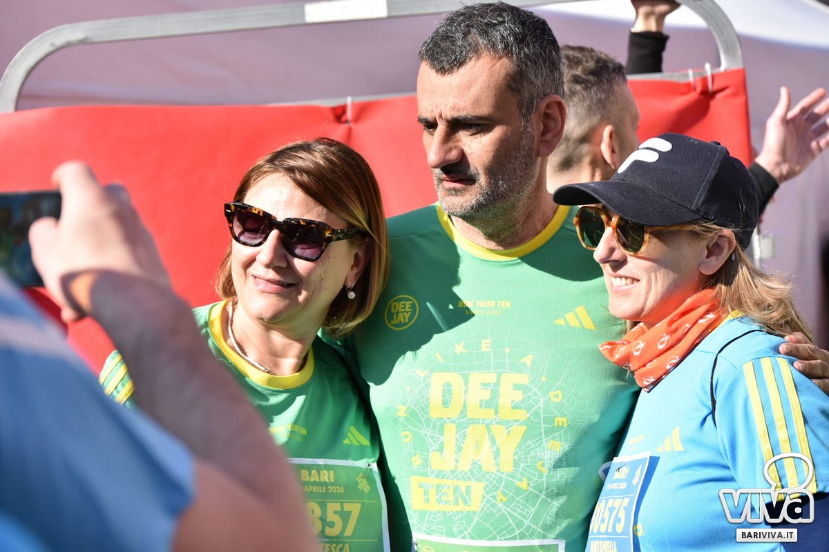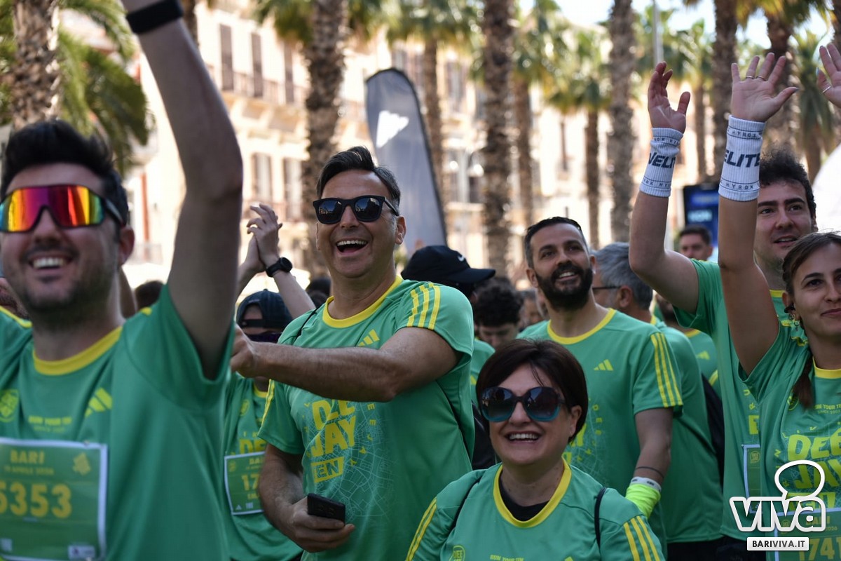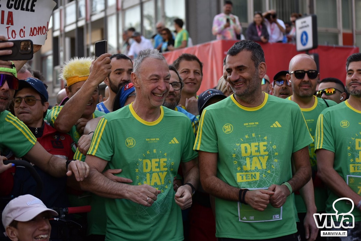 Grande successo a Bari per la seconda tappa della Deejay Ten, la corsa non agonistica ideata da Linus e firmata Radio Deejay, che anche quest'anno ha richiamato migliaia di appassionati. Un totale di 10.000 partecipanti, di tutte le età e capacità atletiche, hanno preso parte all'evento che, per oltre vent'anni, regala una giornata di sport, musica e divertimento.