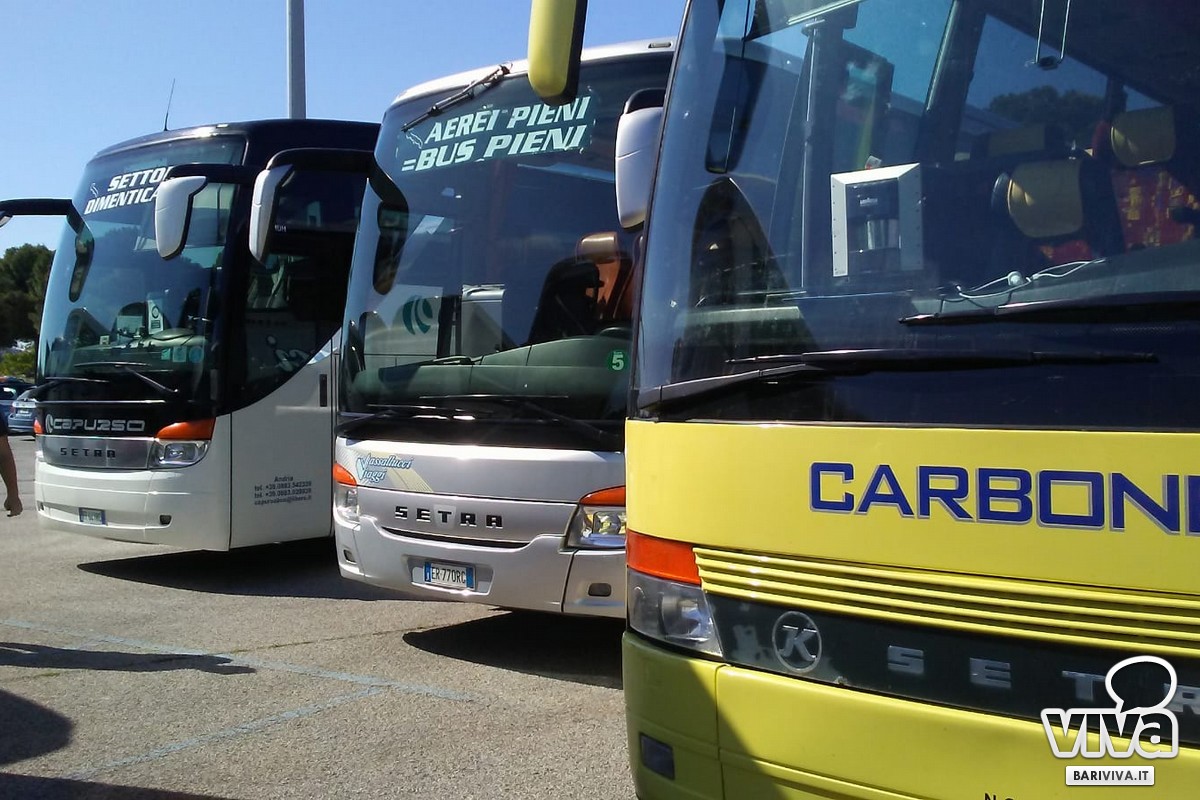 Tutte le aziende pugliesi di autobus turistici, si sono riunite a Bari allo stadio San Nicola per raggiungere la sede della Regione Puglia in via Gentile, con un centinaio di autobus e decine di minibus con percorso in fila indiana, manifestando con slogan e clacson in maniera pacifica.
