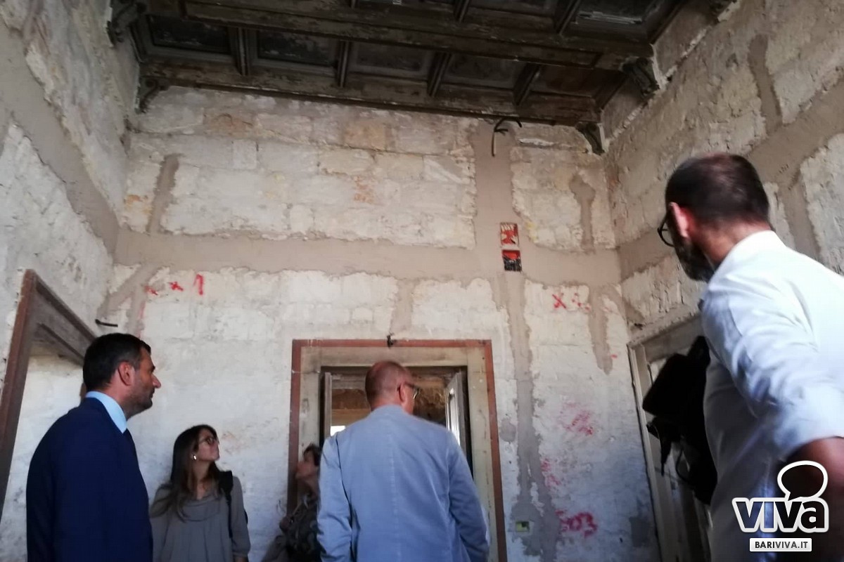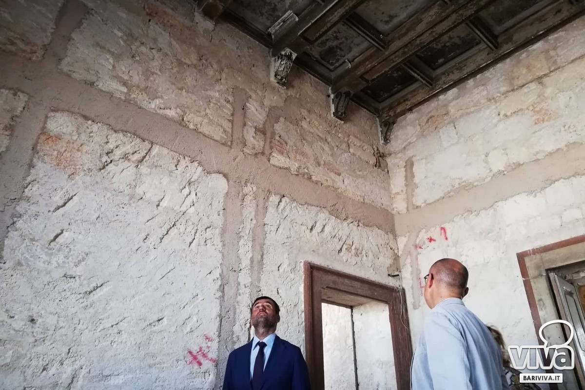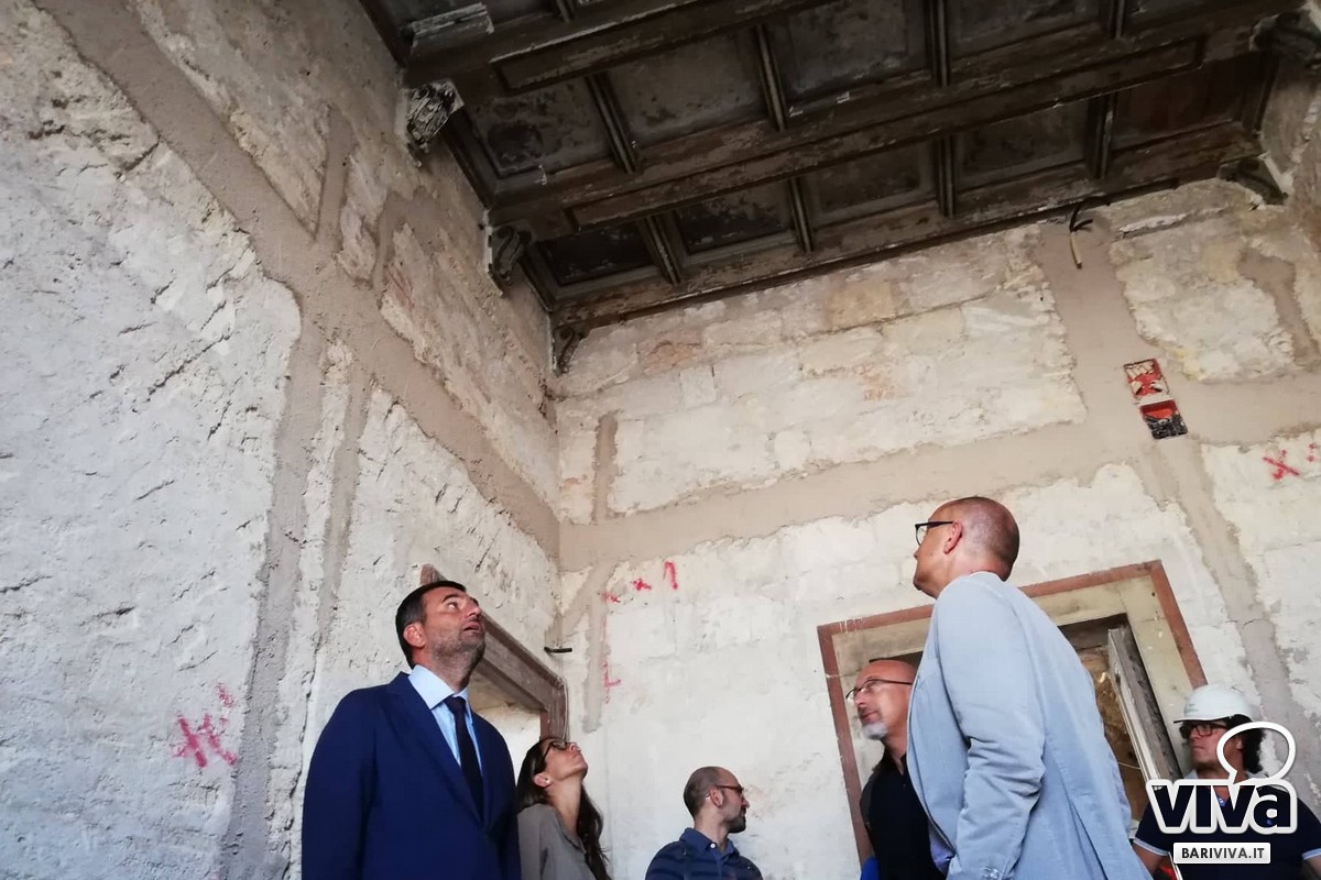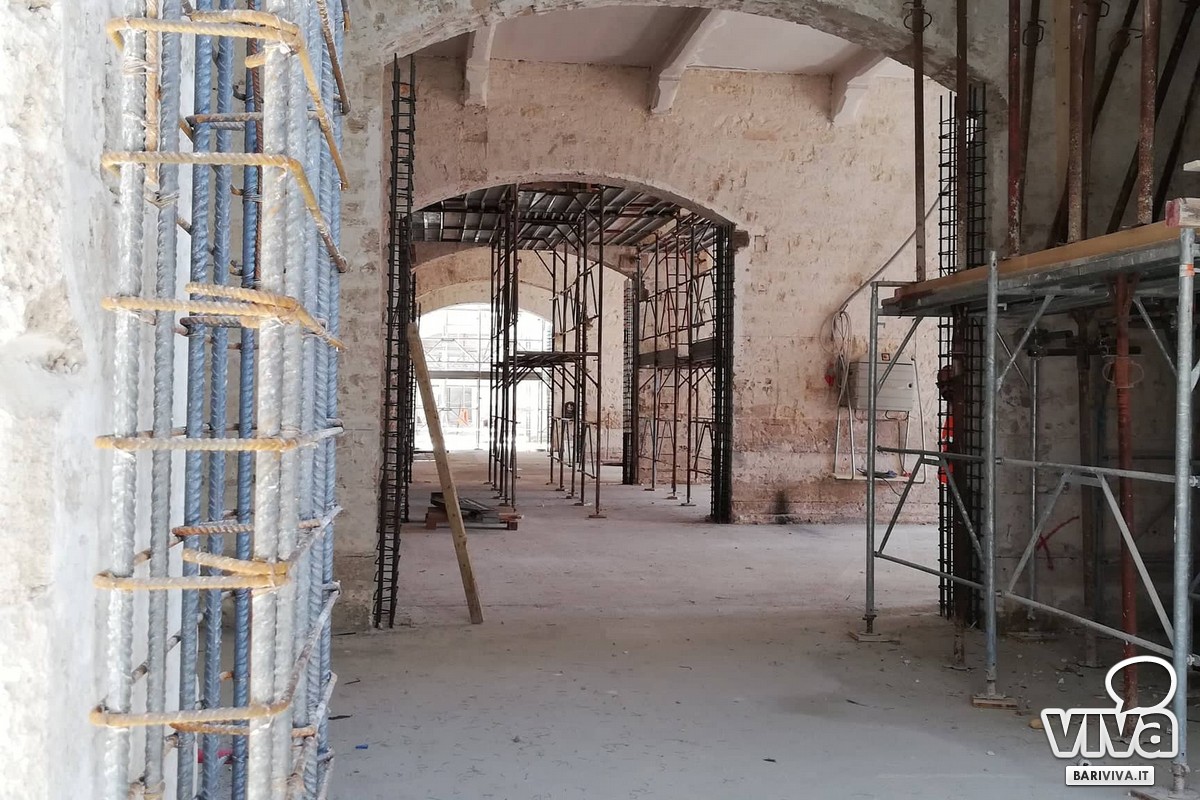 Importante scoperta durante i lavori di riqualificazione della ex caserma Rossani, dove sarà realizzata la nuova sede della teca del Mediterraneo, la biblioteca del consiglio regionale. Eliminata la controsoffittatura dalla stanza che era del comandante, nella palazzina dove c'era il comando militare, è spuntato un soffitto ligneo di circa cento anni fa. Il prezioso ritrovamento sarà oggetto di recupero, insieme agli intarsi.Questa mattina il sopralluogo del sindaco di Bari, Antonio Decaro, e dell'assessore ai Lavori pubblici Giuseppe Galasso. Il nuovo polo bibliotecario sarà consegnato alla città a fine 2020, verosimilmente nel periodo di Natale. I lavori, all'interno delle due palazzine, sono stati realizzati al 35 percento, come spiega Galasso. Sono state portate a termine completate tutte le parti demolitive, sono stati effettuati i consolidamenti e creati i corpi scale e vani ascensore. È stata terminata anche la realizzazione di un nuovo interpiano di 500 mq che aumenta la fruizione da parte del pubblico. Entro novembre, infine, ci sarà il montaggio della nuova copertura lignea.
