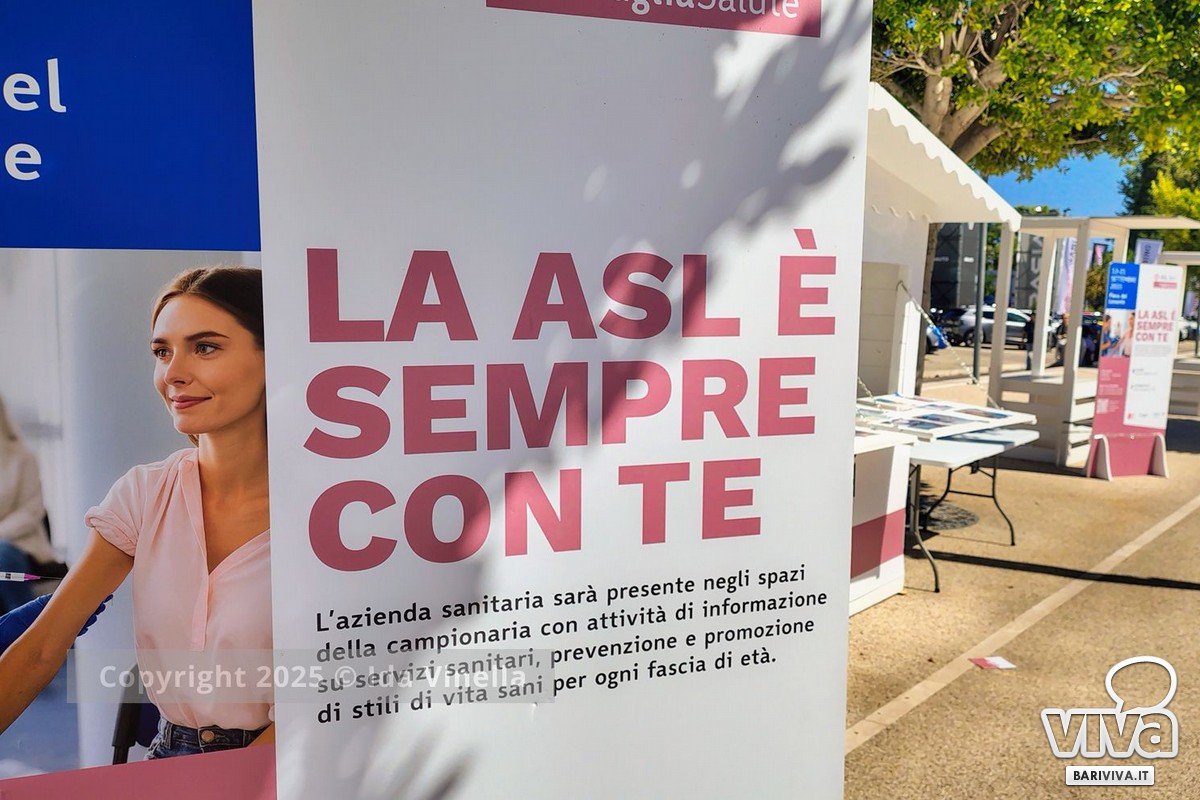 l'ASL Bari è presente per tutti i giorni della Campionaria con attività che spaziano dallo screening sanitario alla prevenzione, alle donazioni di sangue, con più postazioni: un gazebo davanti al Padiglione 216, un'autoemoteca per test e vaccini, e un info point lungo la rambla centrale della Fiera. Gli operatori offrono dimostrazioni pratiche (rianimazione cardio-polmonare, massaggio cardiaco, disostruzione delle vie aeree), consulenze su salute polmonare, rischio cardiovascolare, alimentazione, terapia del dolore, prevenzione di patologie testa-collo. Inoltre è attivo, nel Padiglione della Regione Puglia, un ambulatorio per patologie croniche (cardiovascolari, pneumologiche, endocrino-metaboliche…), con prenotazione obbligatoria, dalle 10 alle 13 e dalle 14 alle 18. Lo stand della prevenzione FADOI-ANÍMO integra queste attività, offrendo visite, consigli e materiale informativo sul valore della prevenzione come strumento di salute collettiva.