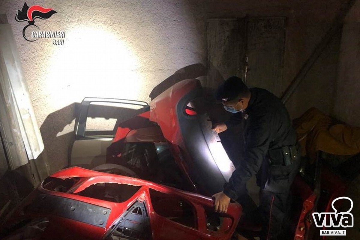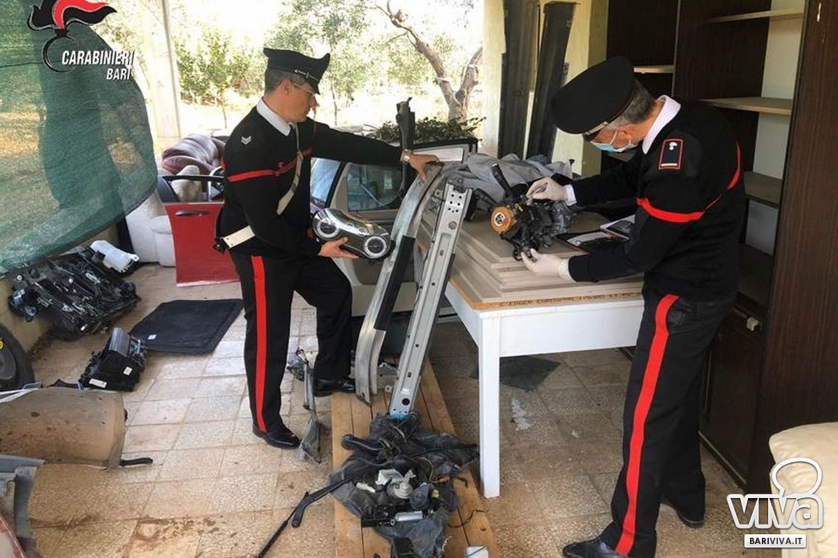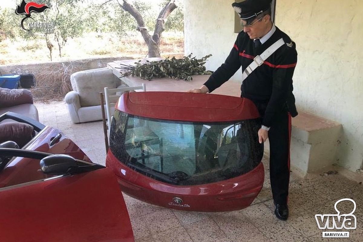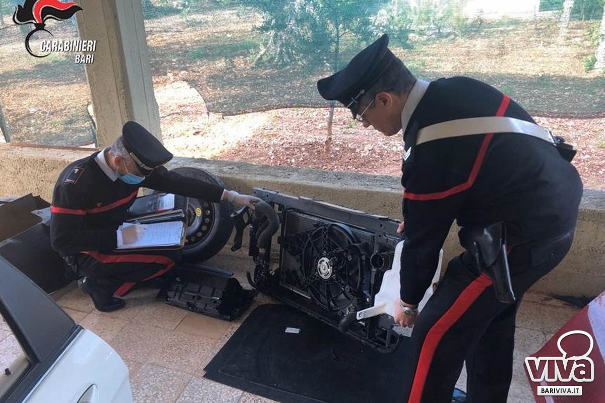 Infatti, in un immobile rurale nella loro disponibilità sito nelle campagne di Mellitto i militari hanno recuperato numerose parti di carrozzeria e meccaniche appartenenti in origine a tre autovetture: una Alfa Romeo Giulietta di colore rosso, una Fiat 500L e una Mercedes classe B di colore bianco. I successivi accertamenti, allo stato, hanno permesso di risalire alla sola Alfa Romeo, risultata rubata a Toritto lo scorso 3 gennaio.