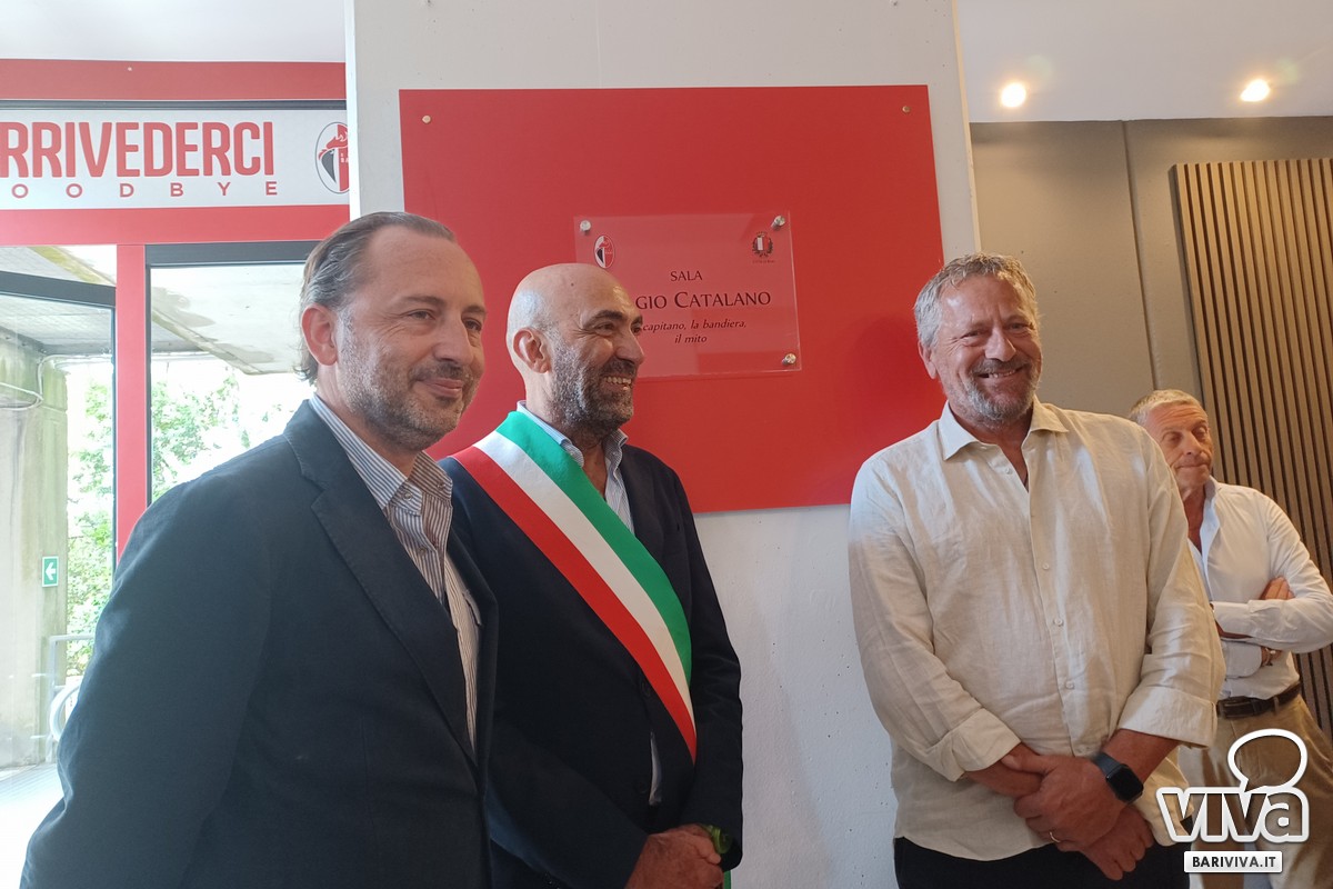 Poco dopo c'è stato lo scoprimento di un'altra targa, questa ritornata al suo posto, nell'area hospitality della Tribuna Ovest dell'impianto di Strada Torrebella. L'omaggio, in questo caso, a Biagio Catalano, bandiera biancorossa, altra pietra miliare della storia di un club che ora deve tornare là dove gli compete per blasone.