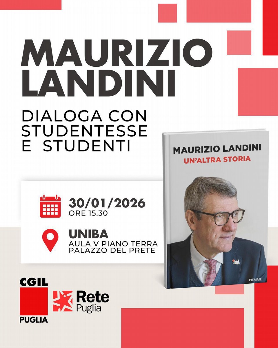 Un dialogo tra il segretario generale della Cgil nazionale, Maurizio Landini, e le studentesse e gli studenti dell'Università di Bari, al centro i temi del lavoro, del precariato, dei bassi salari, dell'emigrazione soprattutto dai territori del Mezzogiorno, ma anche sulle stagioni di lotta che nel Paese portarono all'avanzamento sulla strada dei diritti sociali e civili.