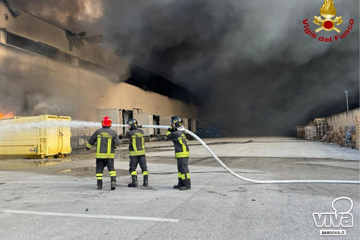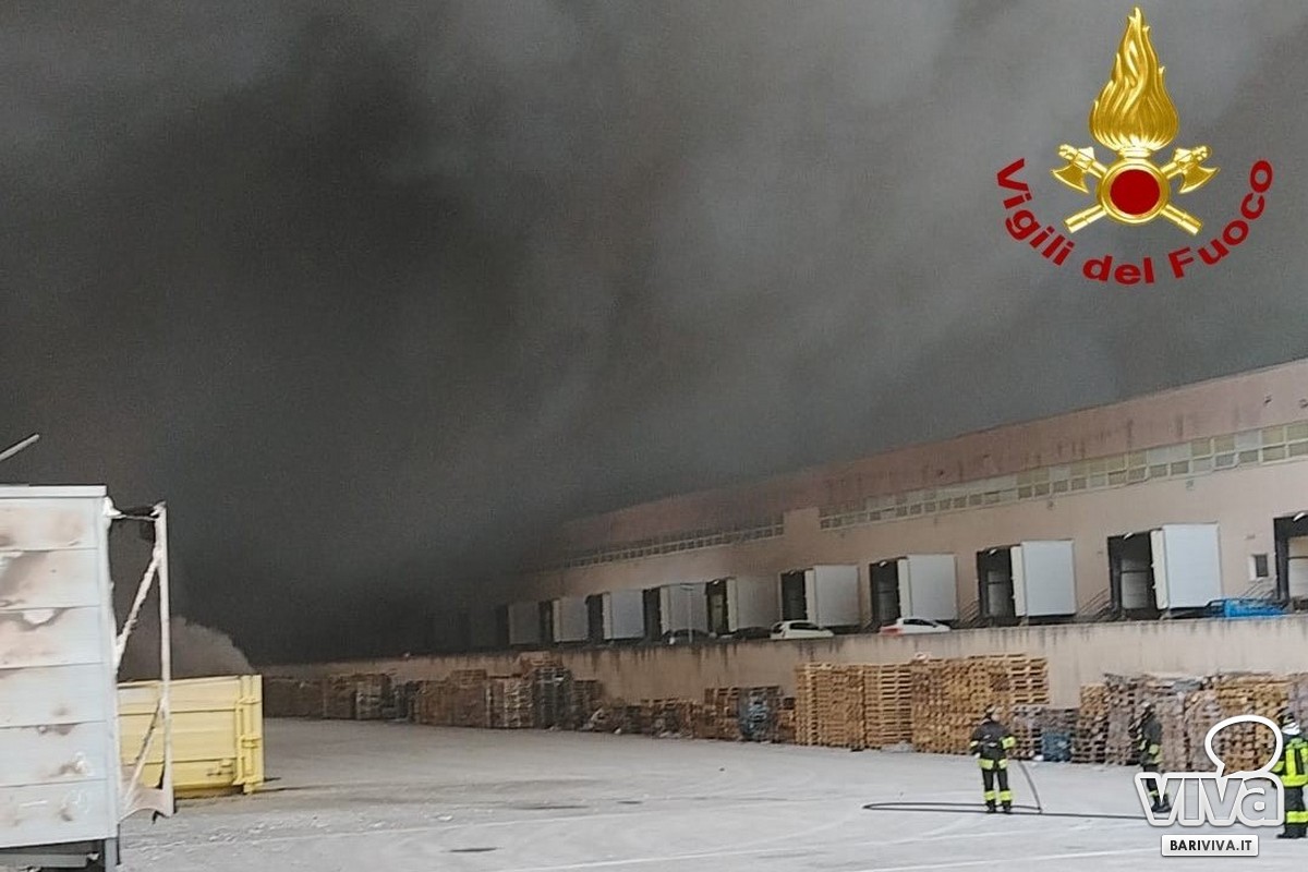 Maxi incendio nella sede di Terminal Puglia a Rutigliano: a fuoco il capannone di oltre 30.000 metri quadri