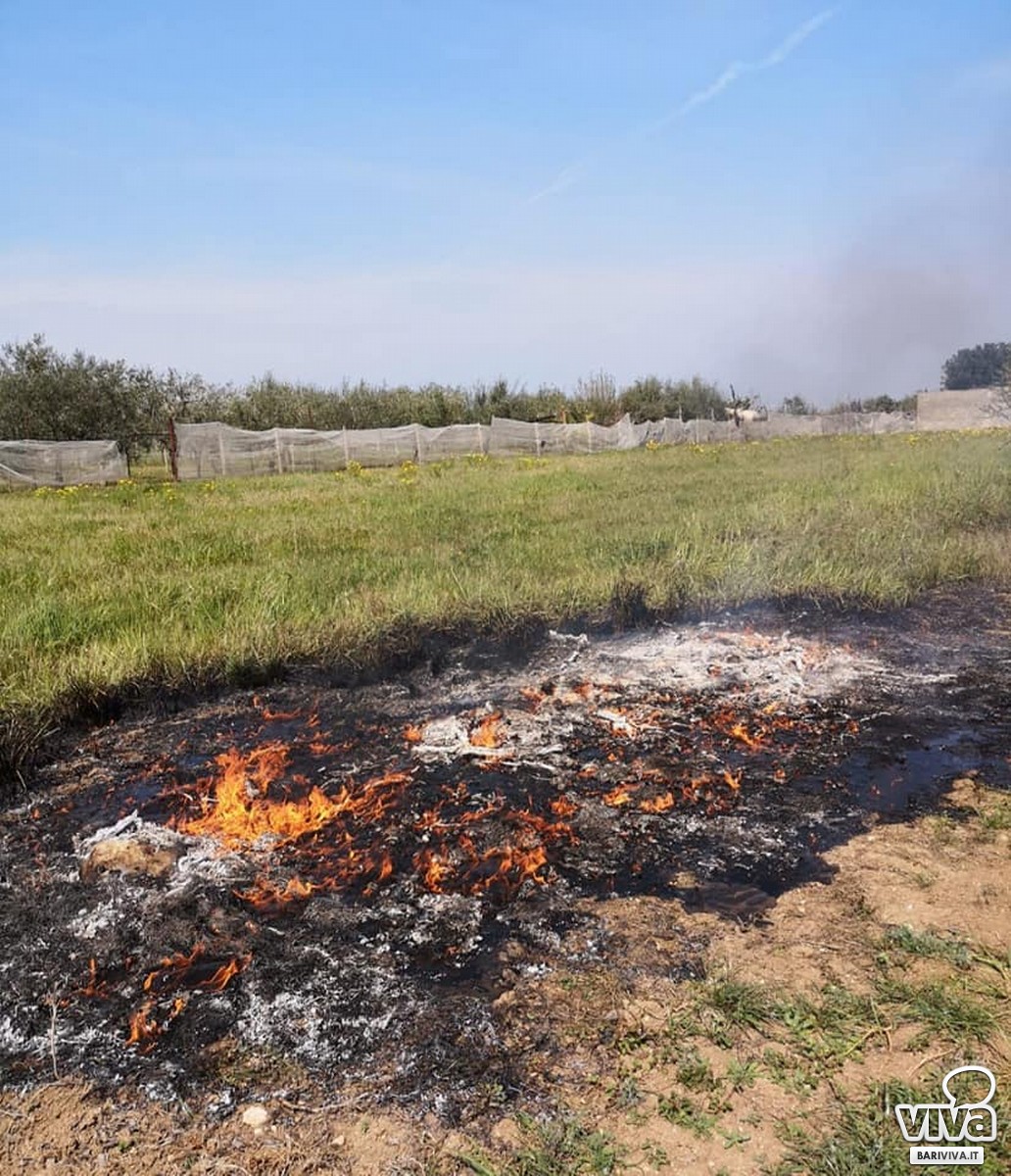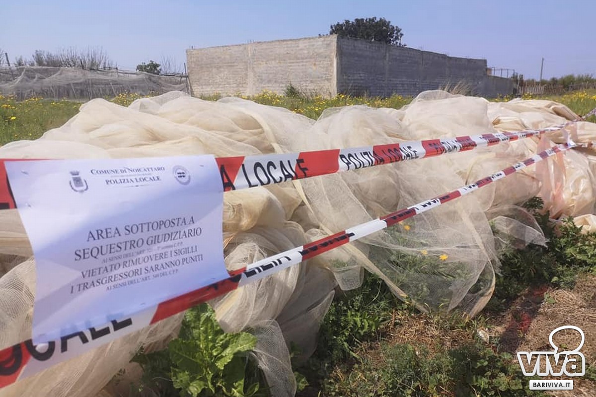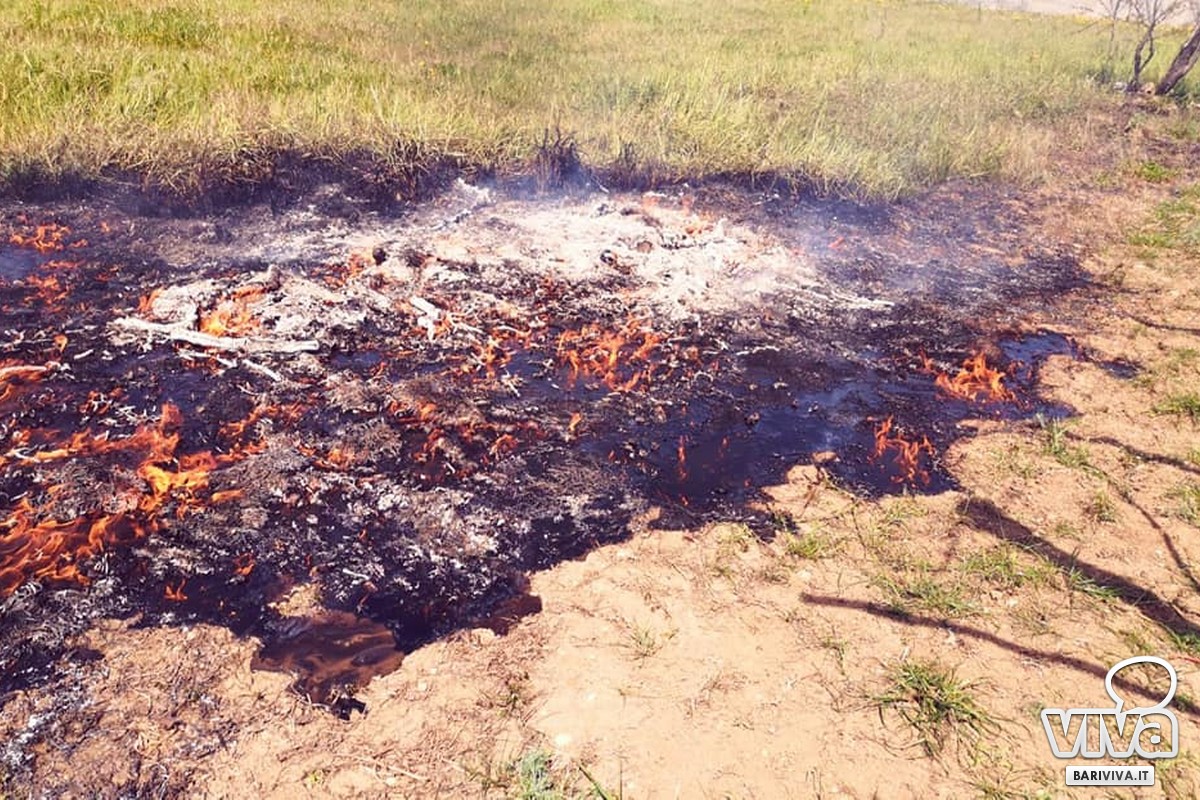 La polizia locale di Noicattaro ha sorpreso questa mattina il titolare di un'azienda agricola intento nel depositare teloni e reti per vigneti e a dar fuoco agli stessi sul suo terreno.
