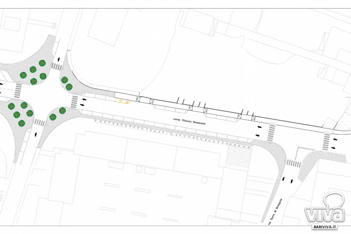 L'intervento si spingerà fino alla parte terminale di via Del Turco, dove s'interseca con corso Vittorio Emanuele, interessando anche il tratto fino all'incrocio con via Torre di Brengola per risolvere un altro problema di marciapiedi correlato alla realizzazione di un complesso residenziale realizzato di recente. Sarà anche eseguita una zona per la sosta degli autobus attigua alla recinzione della scuola Collodi, lungo via Del Turco, in corrispondenza della nuova rotatoria, cosicché i bambini non debbano attraversare la strada per raggiungere i bus. Inoltre, saranno effettuati nuovi attraversamenti pedonali protetti, con un'isola "salvagente" centrale in corrispondenza della rotatoria che permetterà di attraversare la strada e sostare in un'area protetta prima di completare l'attraversamento della strada.