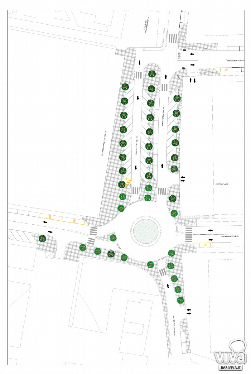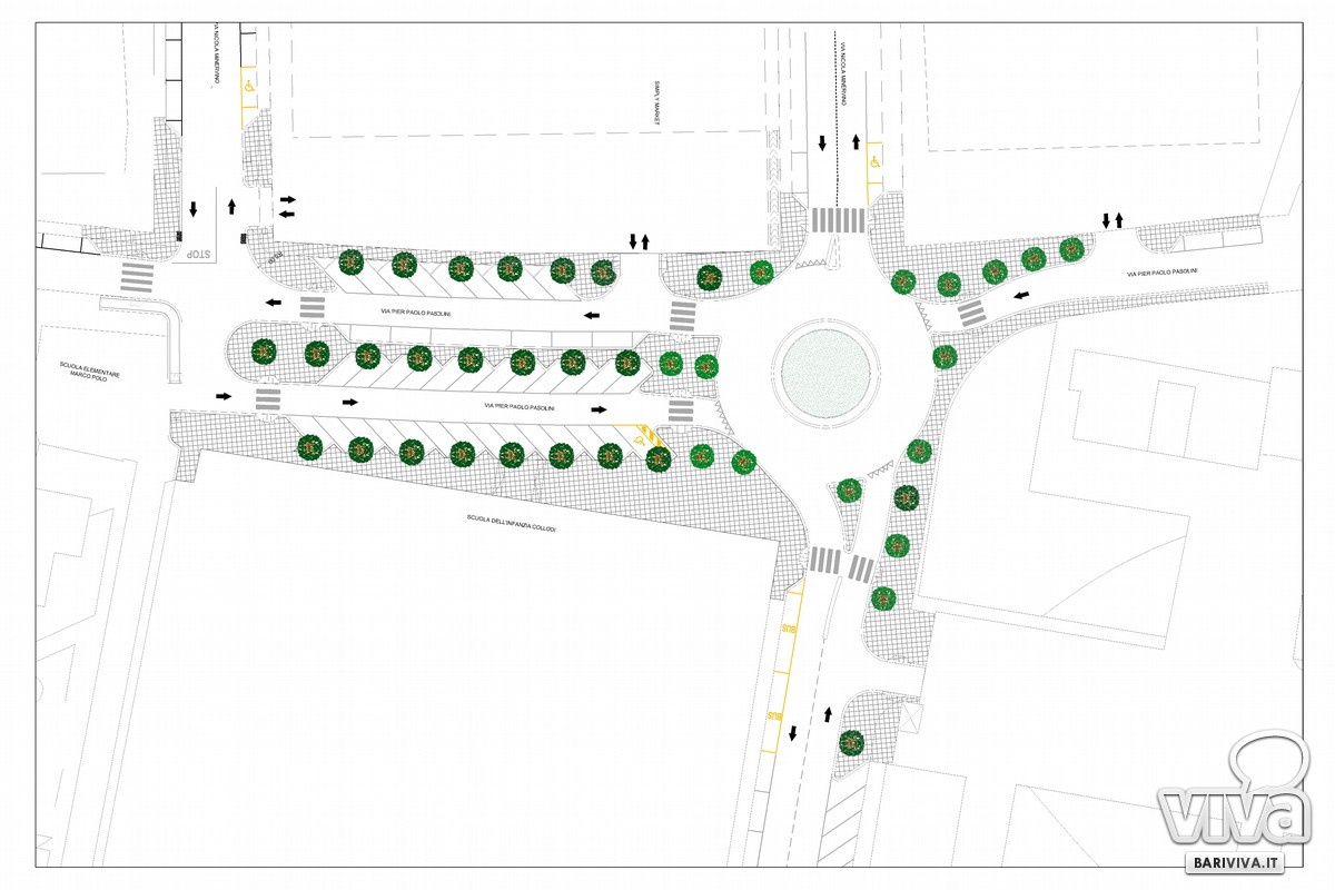 È stato definito nei giorni scorsi il progetto esecutivo di dettaglio della rotatoria che verrà realizzata tra le vie Del Turco, Pasolini e Minervino, nel quartiere Palese (zona 167) di Bari. Si tratta di uno snodo centrale del rione per cui i residenti hanno chiesto a più riprese un intervento a tutela dei pedoni che attraversano l'area, in particolare i bambini che frequentano i due istituti scolastici presenti nei pressi dell'intersezione stradale, la scuola d'infanzia Collodi e quella elementare Marco Polo.