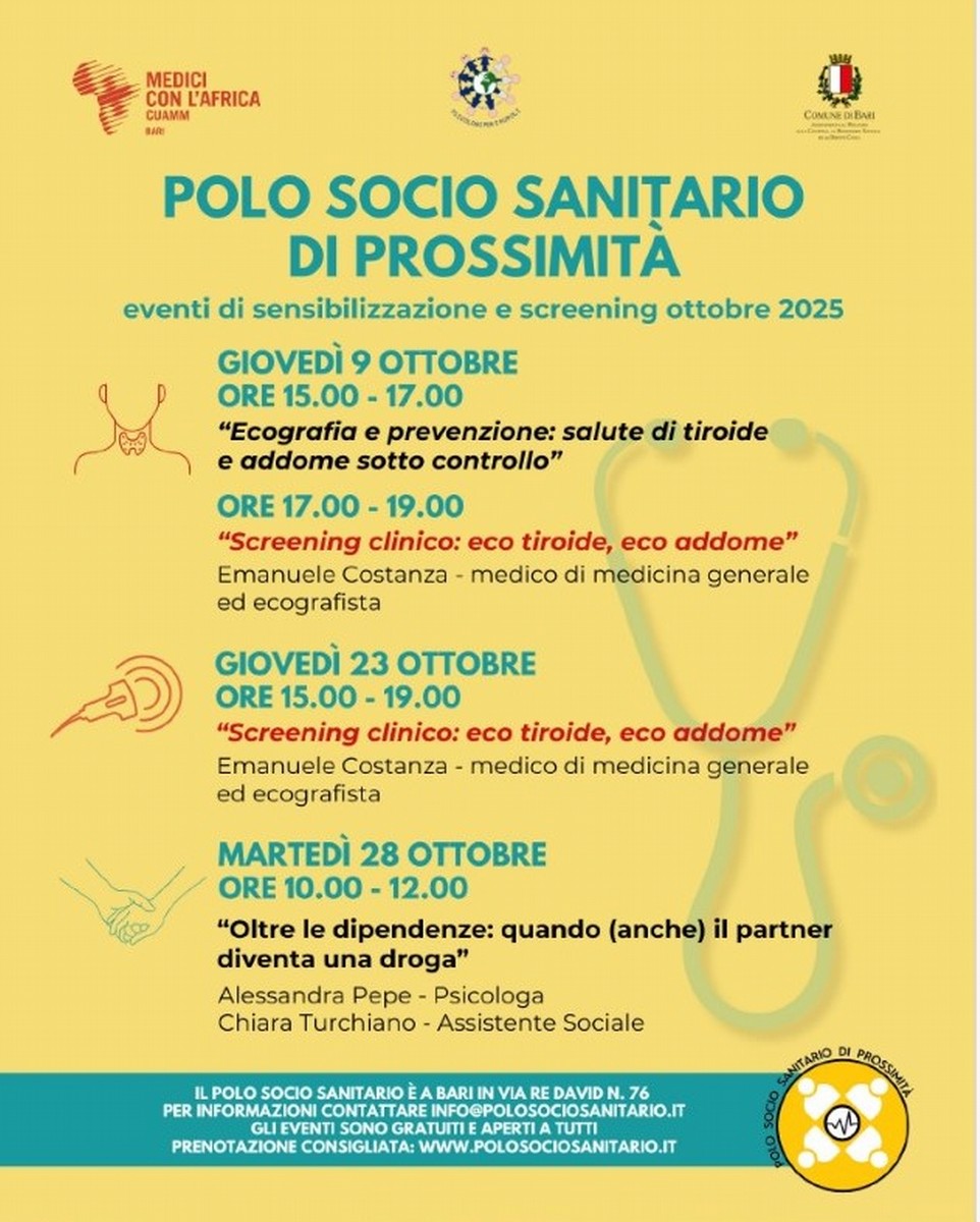 Polo Socio Sanitario di Prossimità a Bari: il programma di informazione e screening di ottobre
