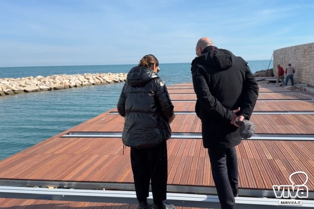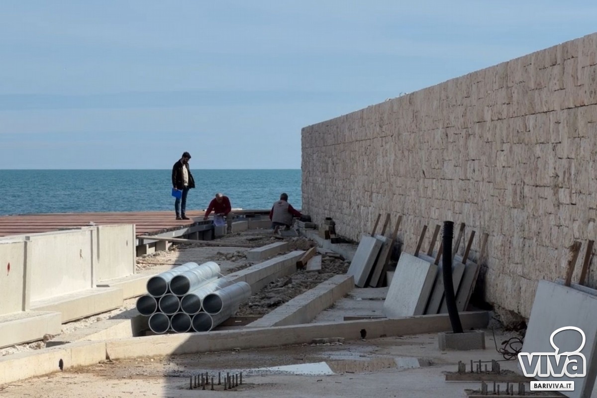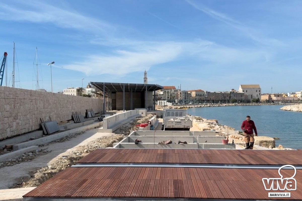 Per quanto riguarda gli spazi esterni, invece, prende forma la "passeggiata sul mare" in legno: è in corso, infatti, la posa in opera delle pedane in legno, pensate da progetto come piattaforme fisse multifunzionali, che richiederà alcune settimane per essere ultimata. Le pedane saranno collegate alla strada con listoni lunghi 11 metri che consentiranno, in futuro, di fare proseguire la passeggiata in legno per ulteriori metri, a costeggiare Bari vecchia. A verificare l'andamento dei lavori è stato il sindaco, nel corso di un sopralluogo.