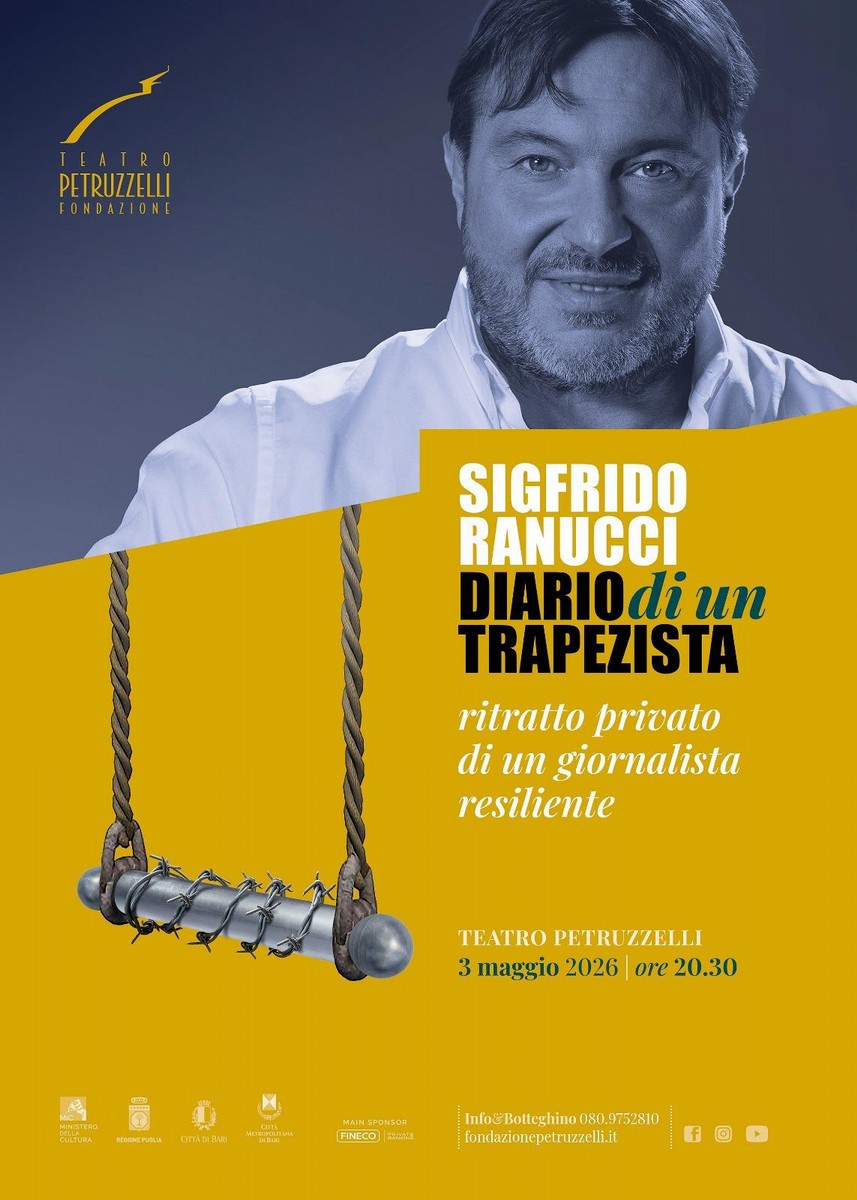 Lunedì 27 ottobre alle ore 16.00 nel foyer del Teatro Petruzzelli avrà luogo la conferenza stampa di presentazione dello spettacolo Diario di un trapezista di e con Sigfrido Ranucci.
