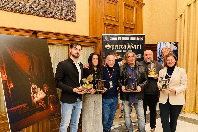 Si è svolta questa mattina, nella sala giunta di Palazzo della Città, la presentazione della ventunesima edizione di "SpaccaBari", la tradizionale mostra di presepi d'autore che quest'anno si svolgerà dal 29 novembre al 6 gennaio 2026, all'interno del Fortino Sant'Antonio. A illustrare i dettagli della mostra, organizzata dall'associazione SpaccaBari, il presidente Biagio Diana in arte "Zio Gino", nel corso di un incontro con la presidente della commissione Pari opportunità Angela Perna.