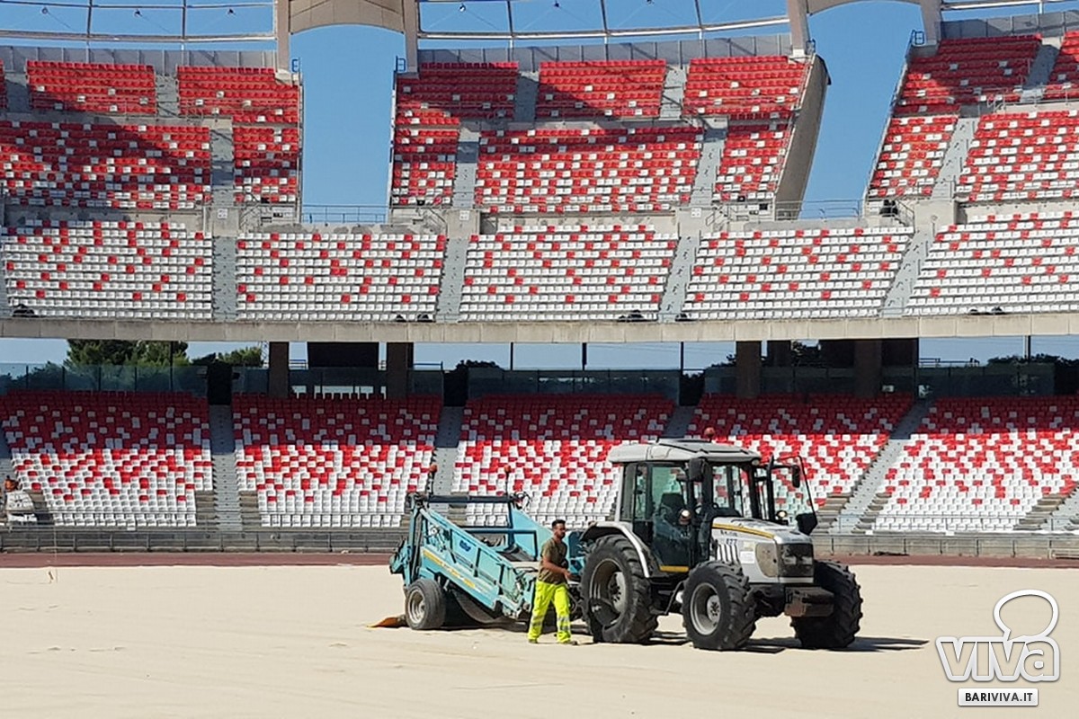 Stadio San Nicola, ripresi i lavori di rifacimento del campo di gioco